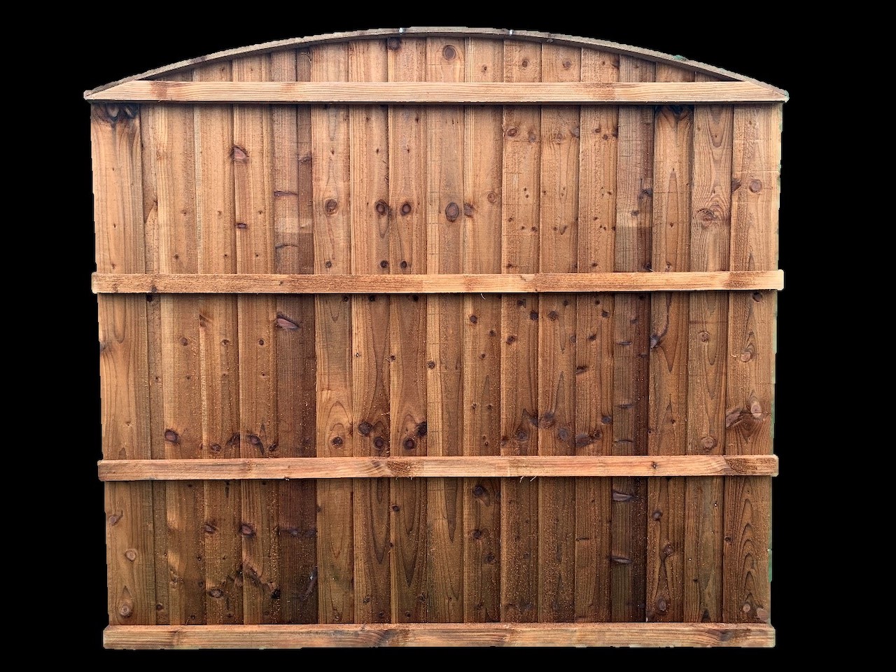 Our Luxury Heavy Duty ‘V’ Board Convex Fence Panels can be used in a wide variety of locations and areas with concrete or timber posts. All of our Heavy Duty ‘V’ Board Fence Panels are manufactured using fully tanalised and pressure-treated timber implementing the latest next-generation tanatone and tanalith ‘E’ technologies. We only use FSC-certified timber (Forest Stewardship Council) harvested & sourced in Ireland and the UK from environmentally managed and controlled woodlands. All of our Fence Panels come with a 10-year anti-fungal, anti-rot & and decay guarantee *In line with our terms and conditions Fence Panels are not ‘Dipped’ or ‘Waterbased’ Paint Treated, we use the latest generation pressure treatment technology. *Please note all heights given are to the shoulder of the panel as it sits in the post NOT to the top of the arch. Please remember that timber is a natural product which can and may crack, split, discolour, expand or contract however this does not detract from the quality of the product supplied